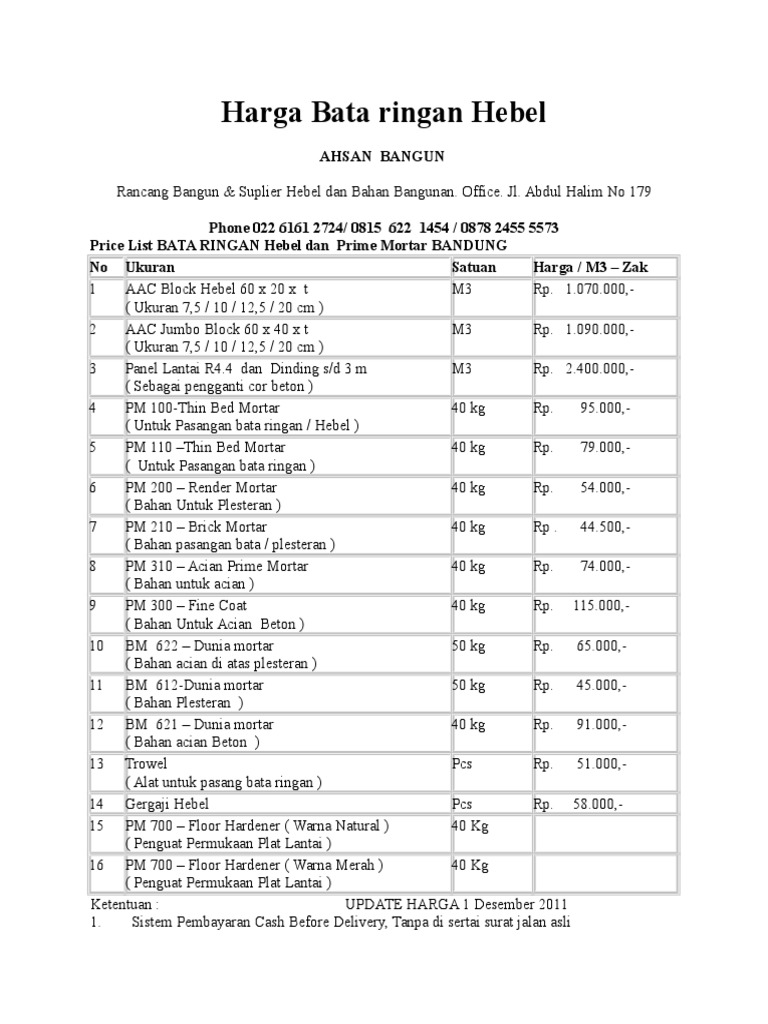 Batu bata biasanya dimanfaatkan setelah itu di tahun 1943 bata ringan dikembangkan lagi oleh joseph hebel di jerman. Daftar harga satuan sewa alat kabupaten jember tahun anggaran 2016 no. Kamu bisa mengetahui daftar harganya secara lengkap di artikel ini. Karena hebel ukuran tersebutut mudah untuk dihitung dalam harga hebel satuan dan harga hebel 1 kubik dalam pekerjaan pembangunan. Bata hebel telah teruji kelayakan pengguanaanya dalam standar nasional indonesia atau sni.
